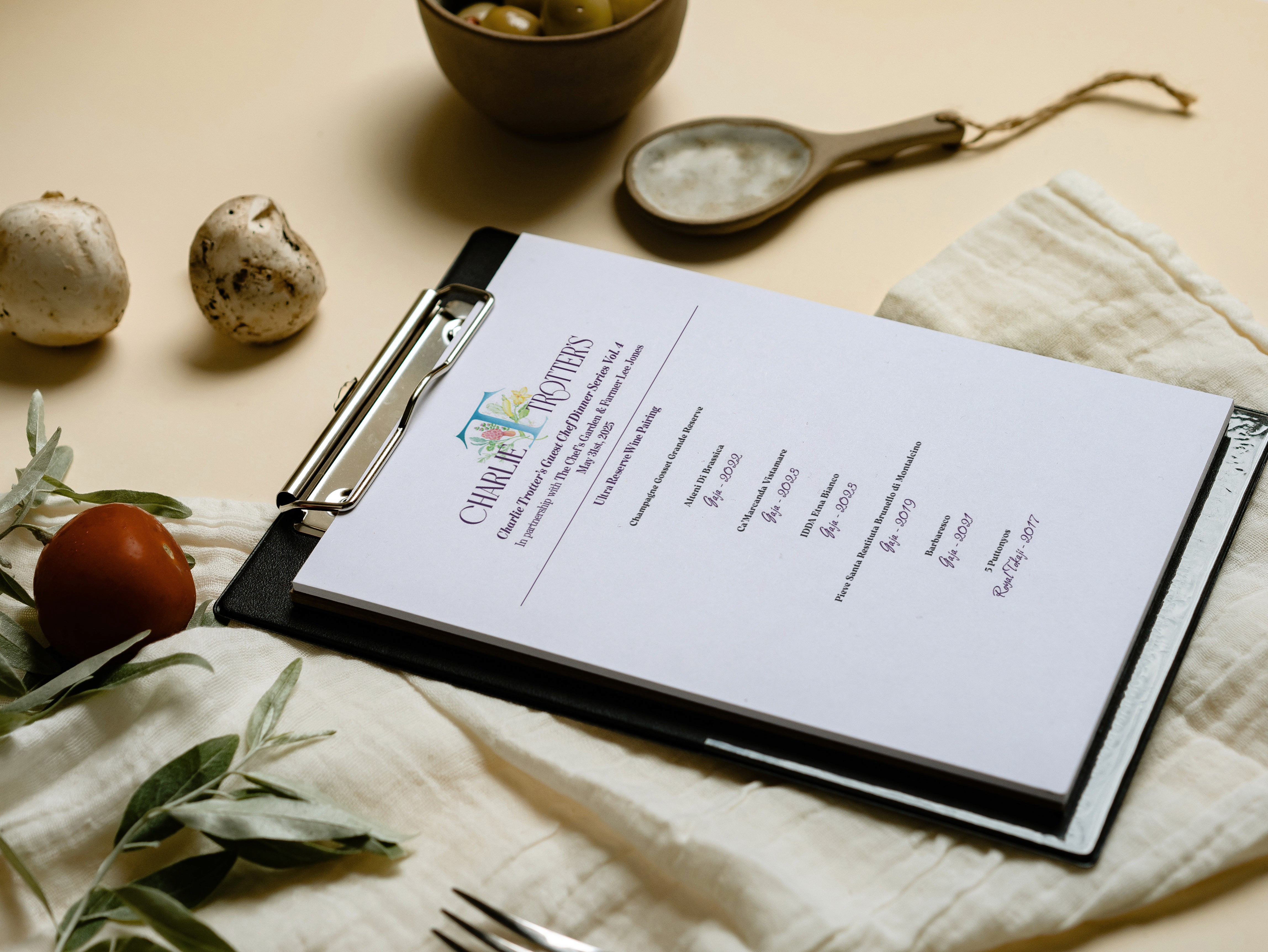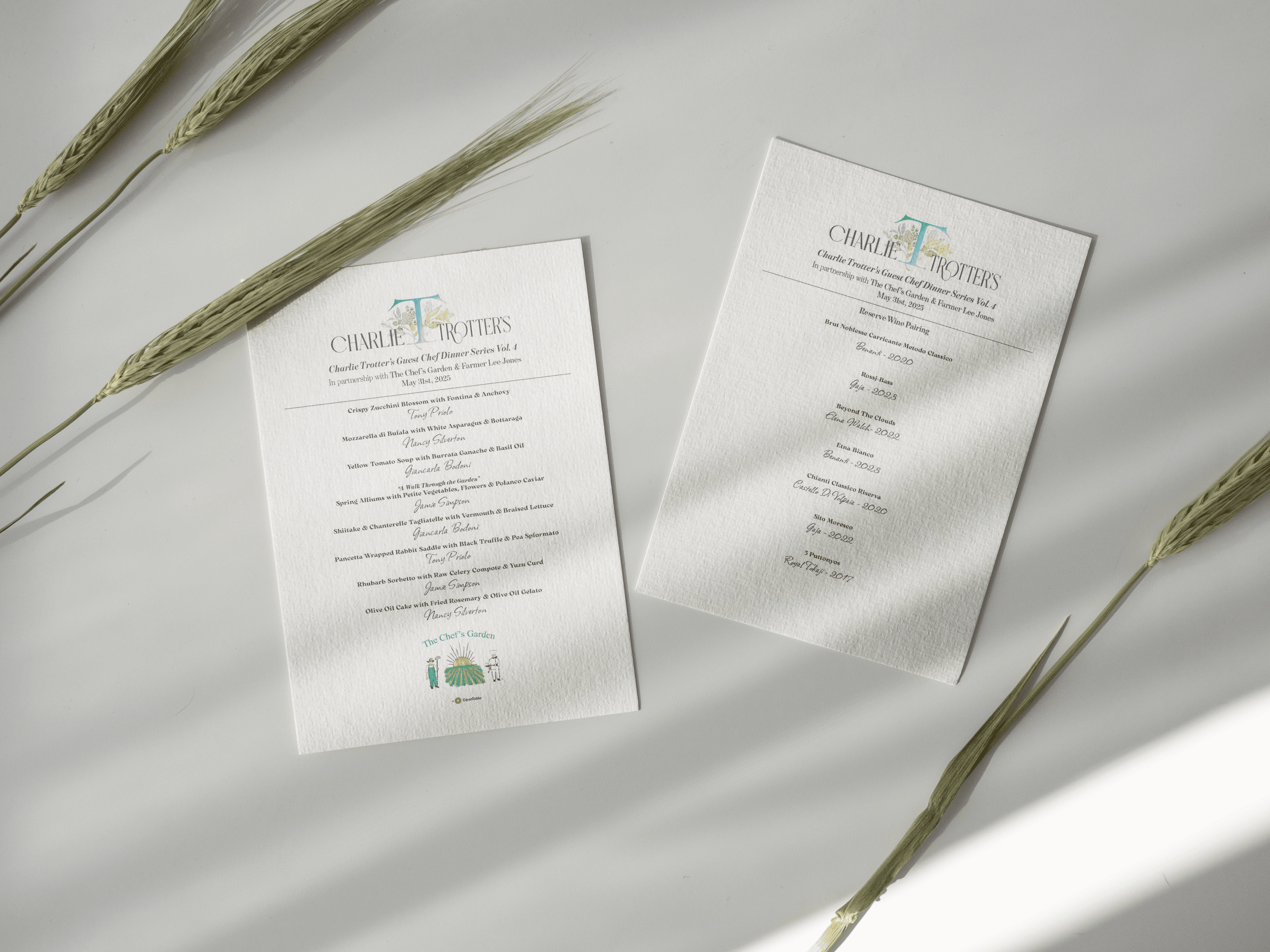 Menu designs for a guest chef series at the legendary restaurant, Charlie Trotter's.