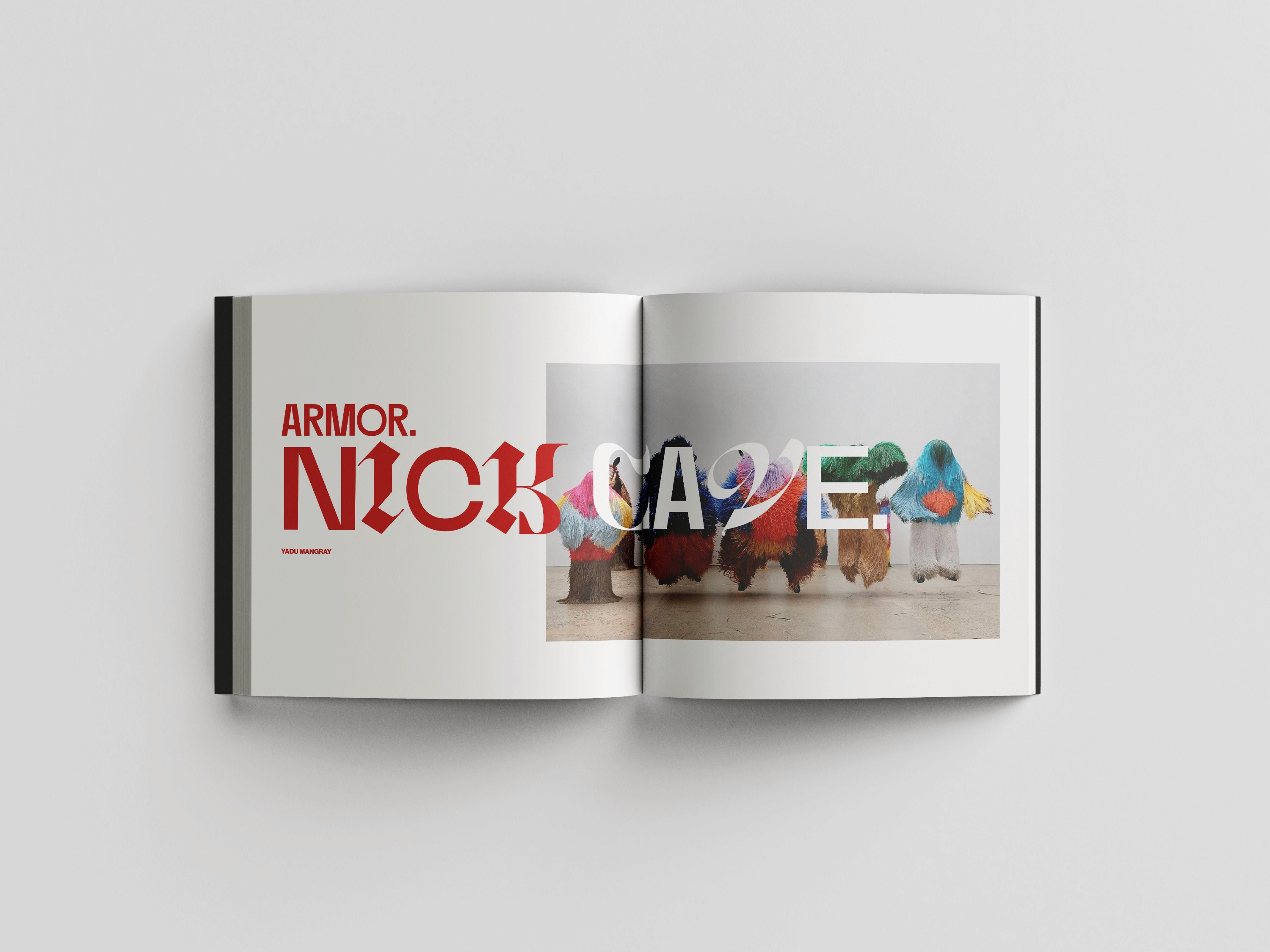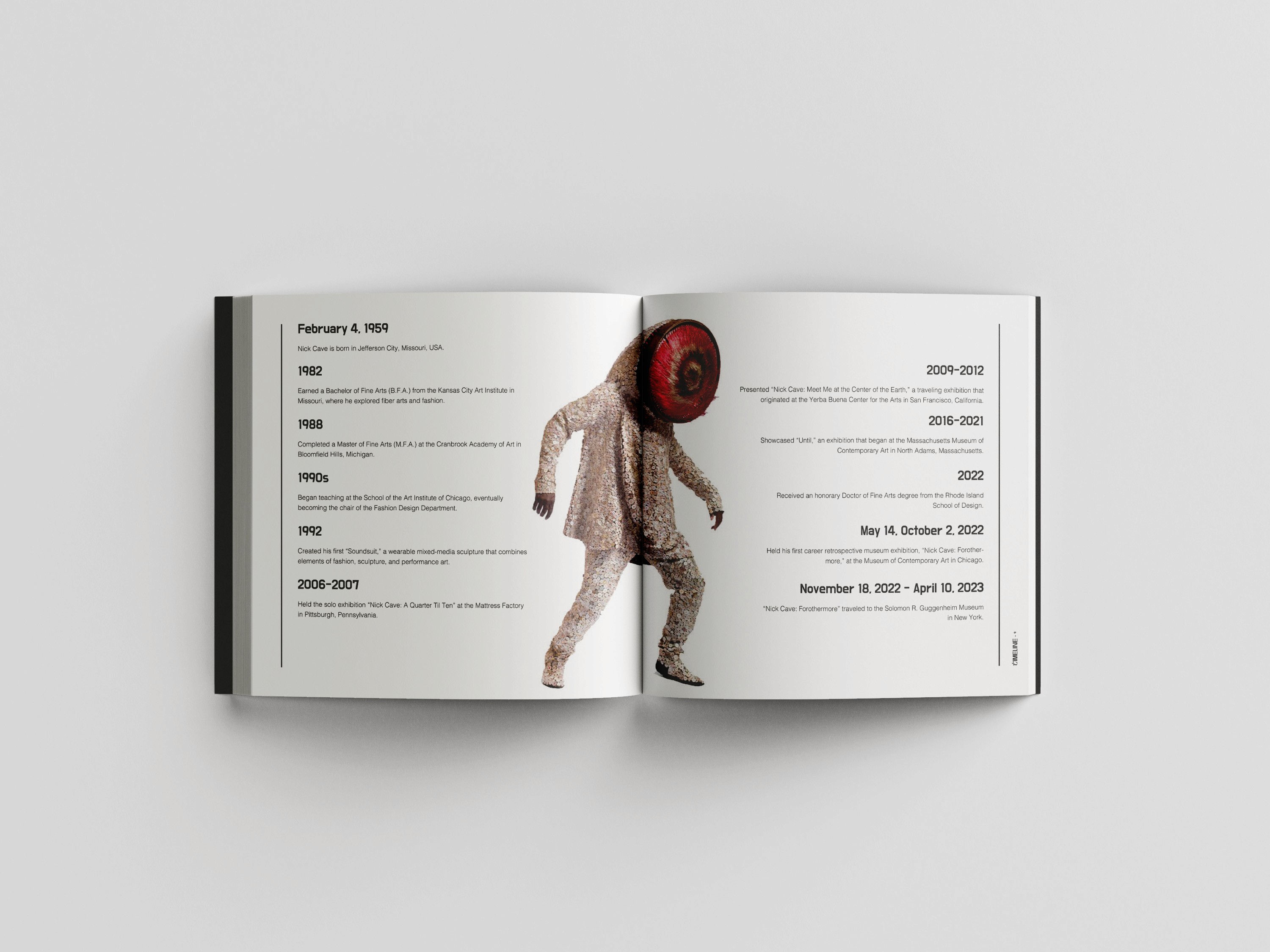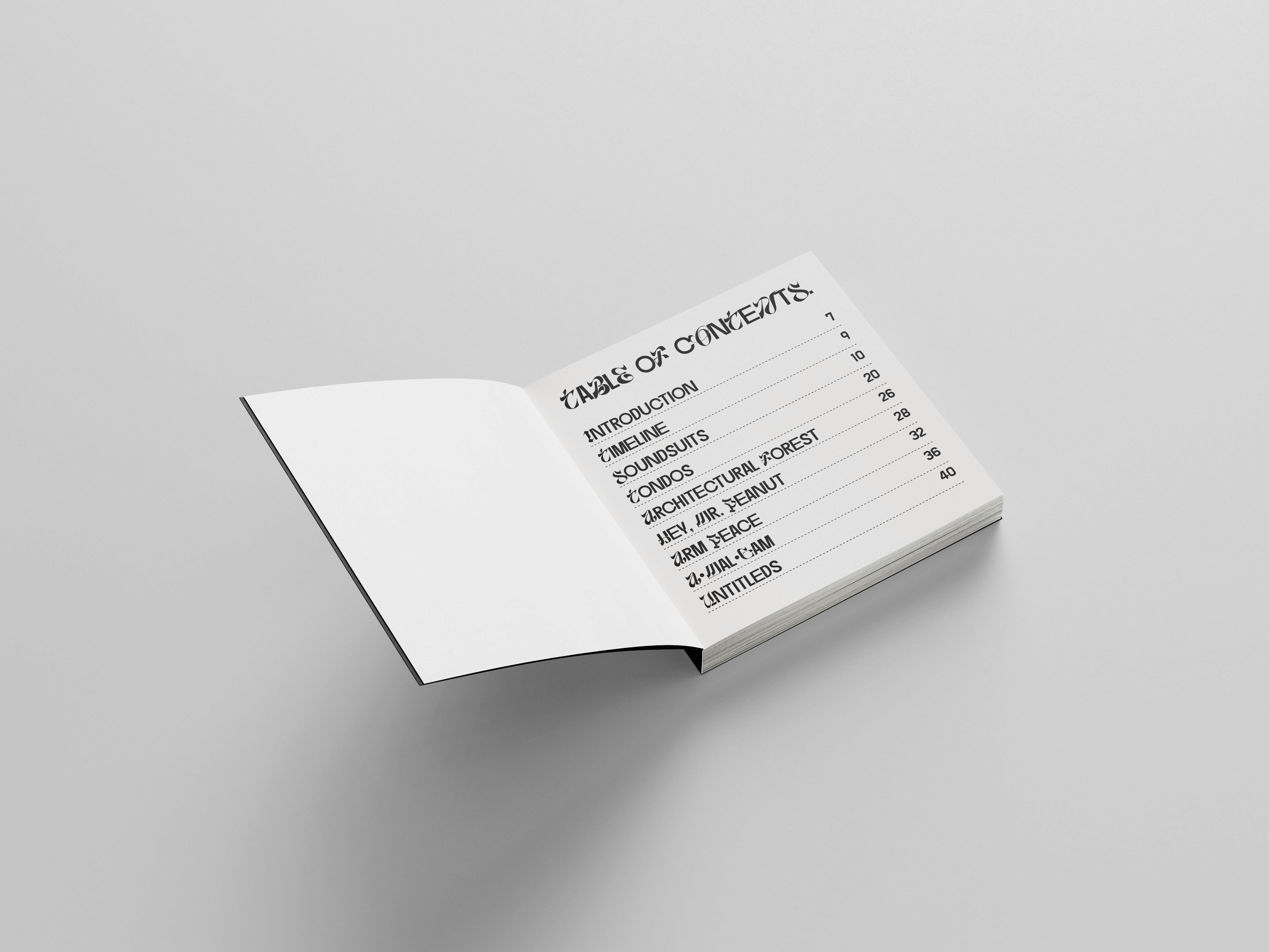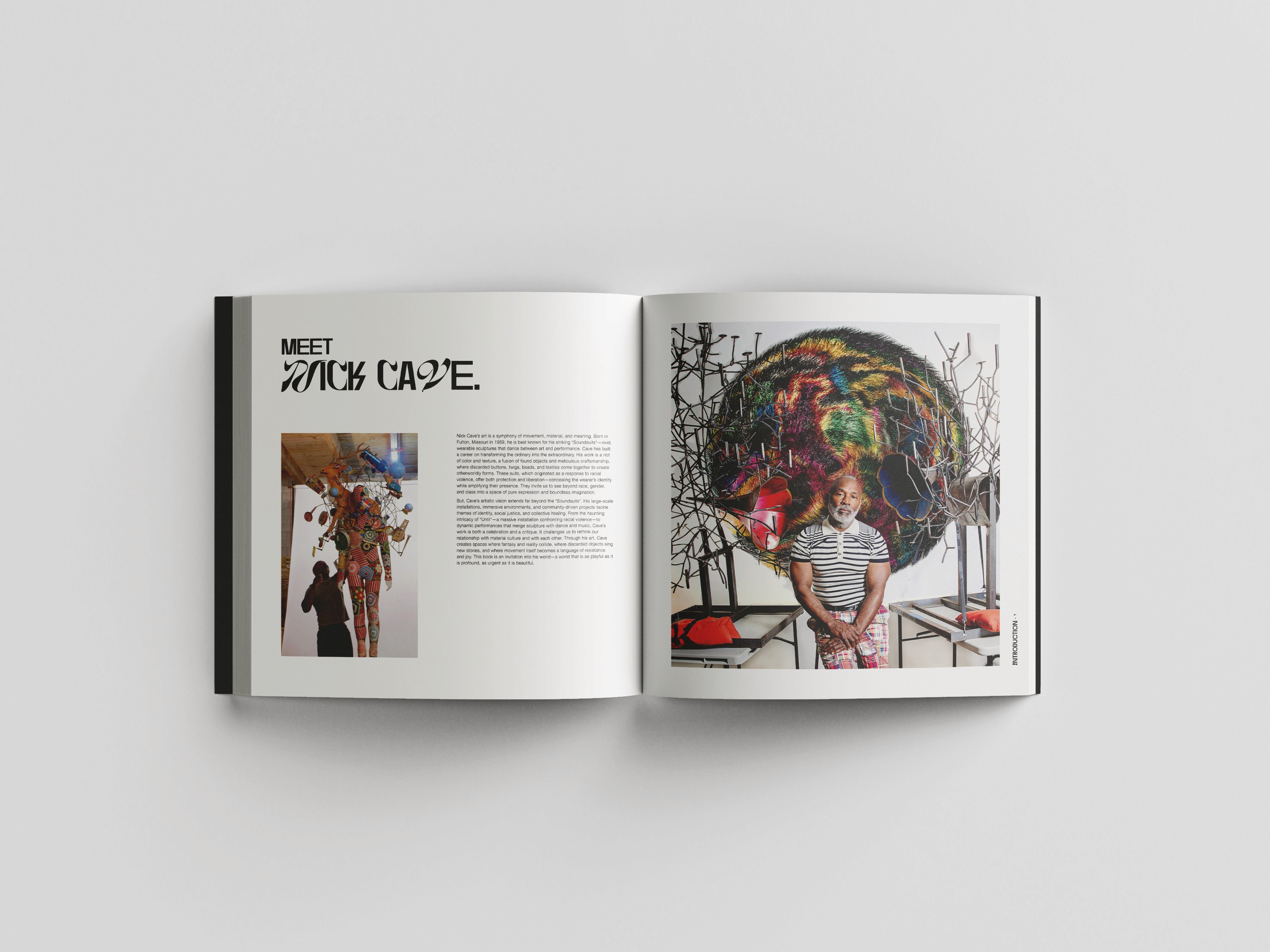 Typography project documenting the work of Nick Cave, his process, and the journey of inspiration of his soundsuits and other sculptural and wearable art.